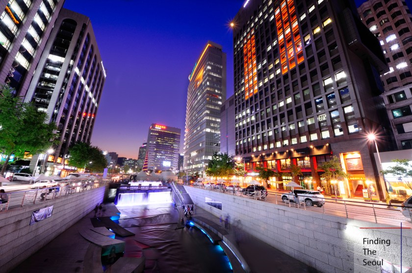 Much of the action happens at the plaza, where the creek starts. You can access this place at the 시청역 (City Hall Station) on the 2nd (green) line. It is one of the most beautiful parts of the creek as well. This area is very close to 세종로 (Sejong-ro), where you can see the giant statue of King Sejong and walk towards 경복궁 (Gyeongbokgung Palace), which is probably the most famous palace in Korea.