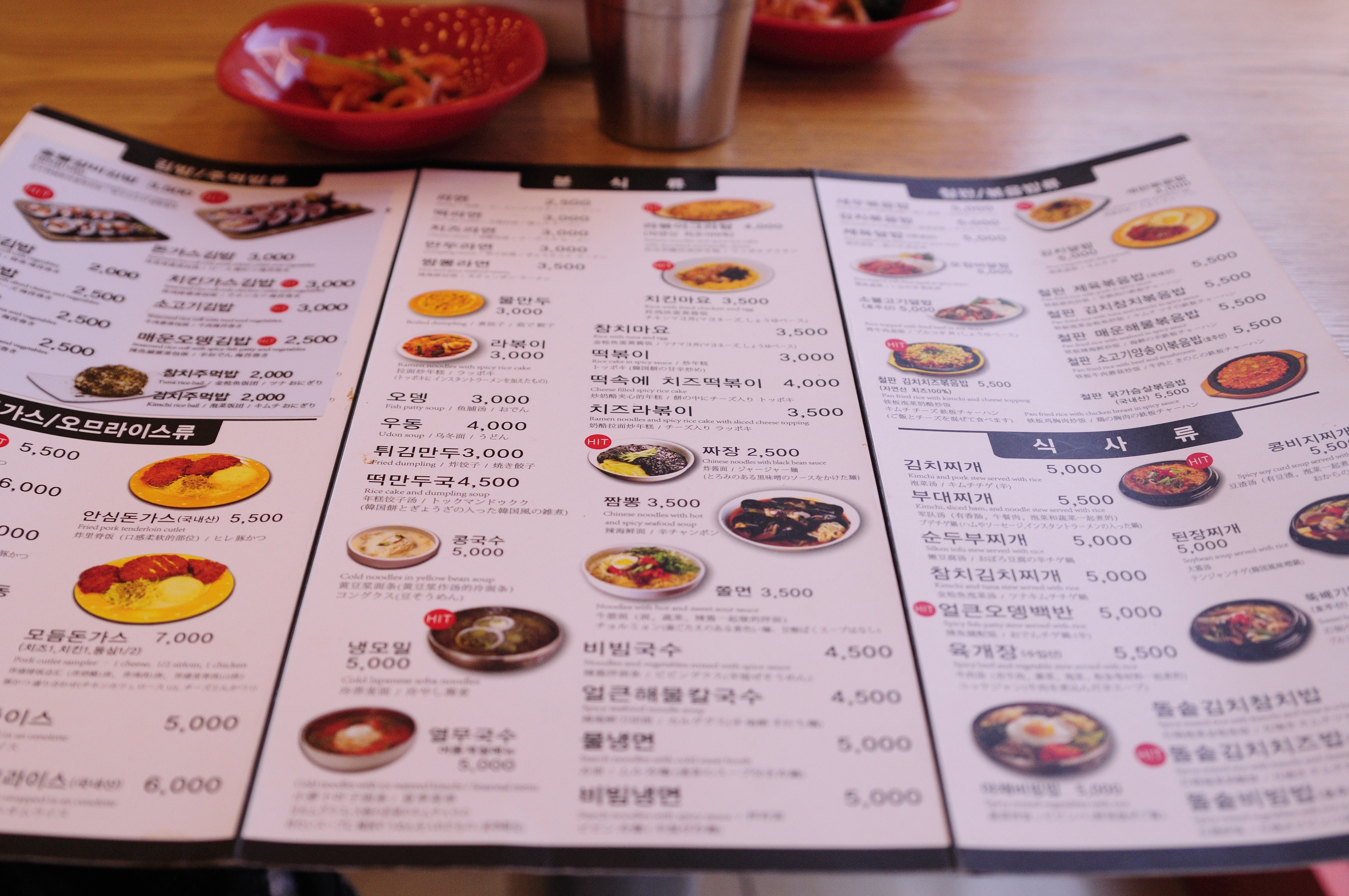 Not everything on their menu is extremely cheap, but their menu is extensive and won’t cost over 7000 won. They have a variety of kimbab (김밥), Katsu, Omelettes, stir fries, Chinese food, stews, and noodle and rice dishes. There are also English translations for all items!