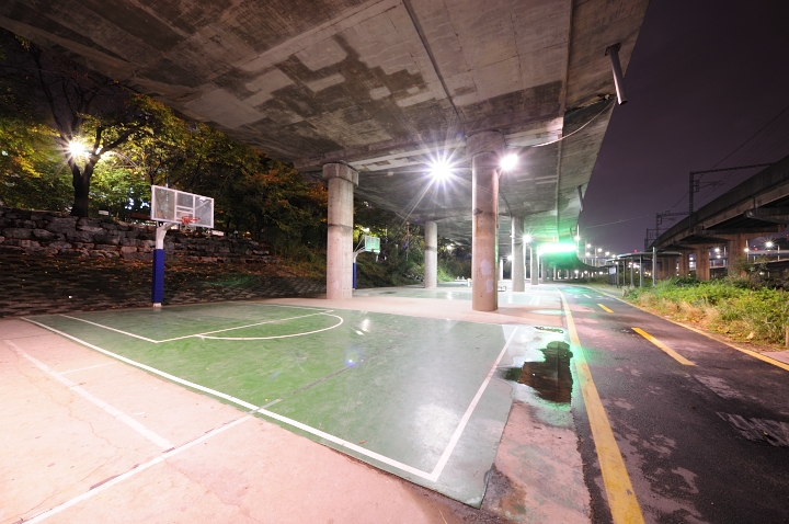 Like most creeks and rivers in Seoul, there is a recreational park with a bike path that runs along the whole creek, exercise equipment, and basketball courts. I really appreciate the city planning that goes into these parks because they are a great use of otherwise empty space.