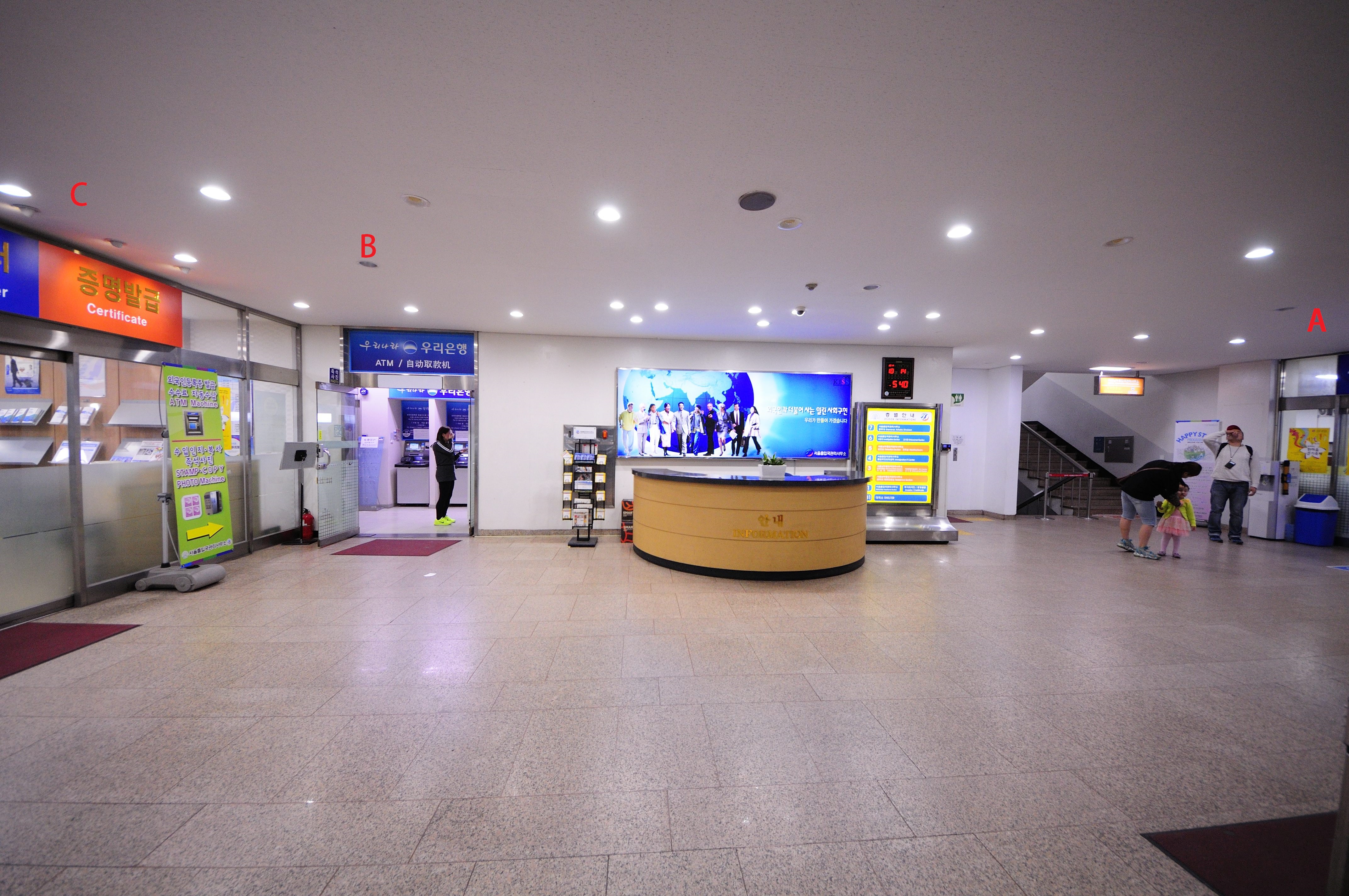 If you forgot any of your materials don’t worry too much. They will paste your passport-sized photo on your application if you were to cheap to buy your own glue. They can make photocopies of your passport and visa for 300 won, and they also have a photo booth to take your passport-sized pic in room B (diagram below). There’s a computer in room C for you to retrieve miscellaneous scanned documents you luckily send to yourself by email, such as that travel plan you may have forgot. I apparently was 3/4 on this missing items list. They pretty much don’t want you making one extra trip as much as you don’t want to make one extra trip.