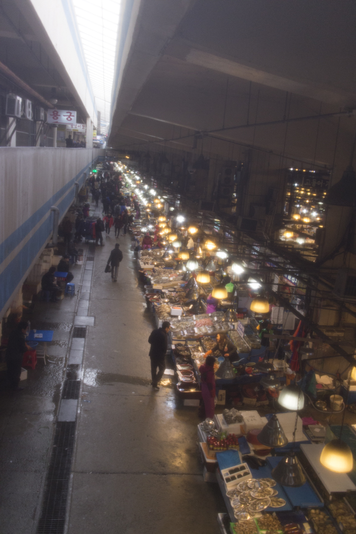 This place is the largest fish market in Seoul with a seemingly endless number of vendors. Upon entering, you get a bird’s eye view of more stalls than the eye can see. There are a couple of restaurants and offices on the balcony floor. There’s also a bathroom, but it’s not for the squeamish.