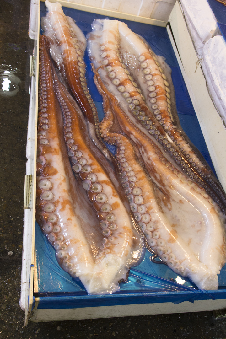 There were a lot of fresh sea creatures on ice as well. Some of the notable ones were the gigantic prawns and large octopuses.