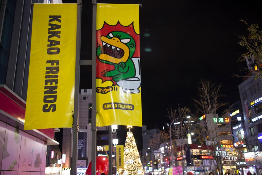 Previous Image Next Image Kakao Promotional Flag Even the outside of the Uplex was decorated with Kakao Friends.