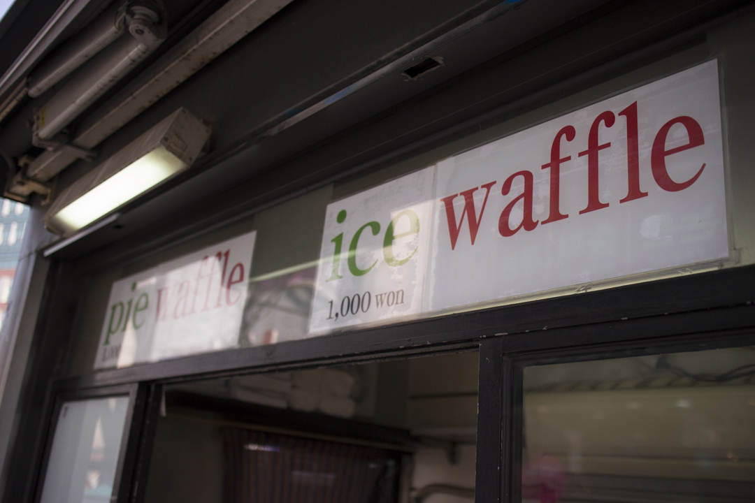 They offer two types of waffles, pie and ice. The ice waffle is the one with ice cream and I never bothered to get the pie waffle. I think the pie waffle only has whipped cream, but I could be wrong. I’m perfectly content with the ice waffle though. Both are 1000 won offering not only the best waffles, but the best valued ones as well!