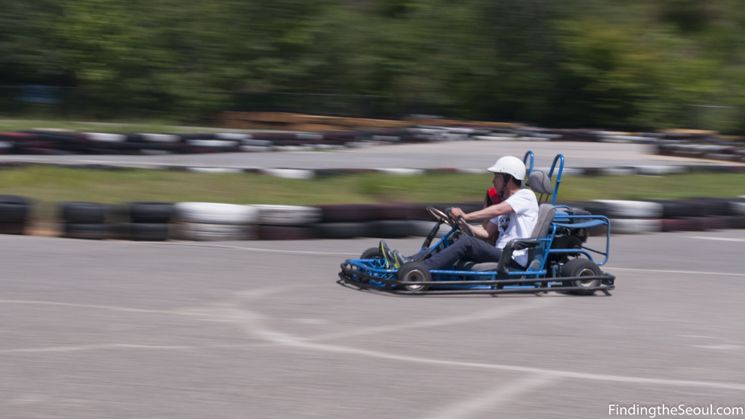 The karts themselves are pretty basic and they even use cushy seats, which was quite a travesty. The top of the pedals actually lean toward you, which was really awkward, but all you have to do is push them forward with your feet to be parallel.There was a lot of play in the pedals, but the steering felt okay. The karts don’t have a lot of torque or horsepower and are more momentum driven. It’s also really easy to overdrive the tires, but they’re pretty consistent.
