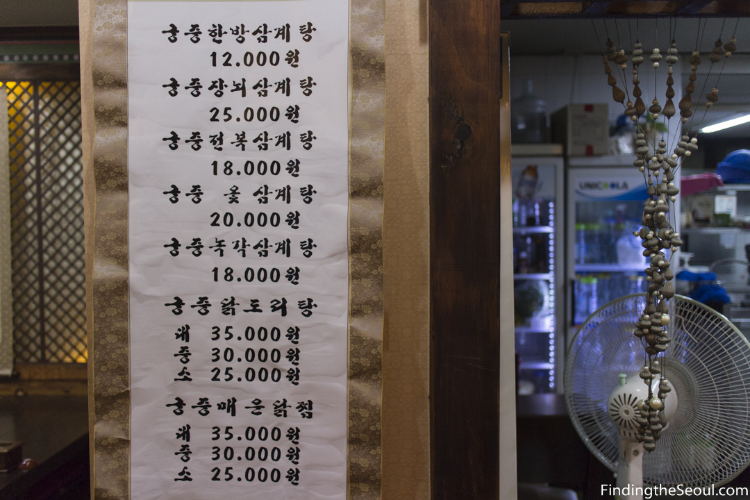 Samgyetang (궁중한방삼계탕) – 12,000 won